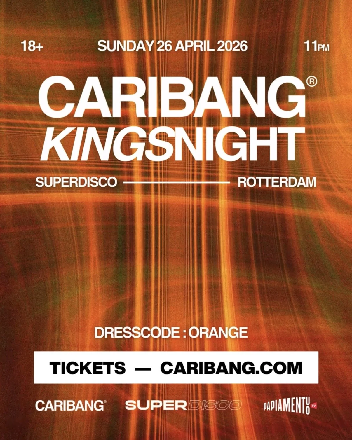 Upcoming events APRIL 26TH 2026 cariBANG KINGSNIGHT @SUPERDISCO, rotterdam 23:00 - 5:00 Tickets Tickets